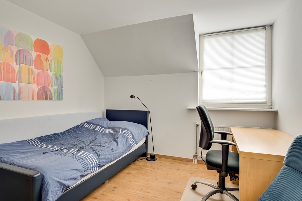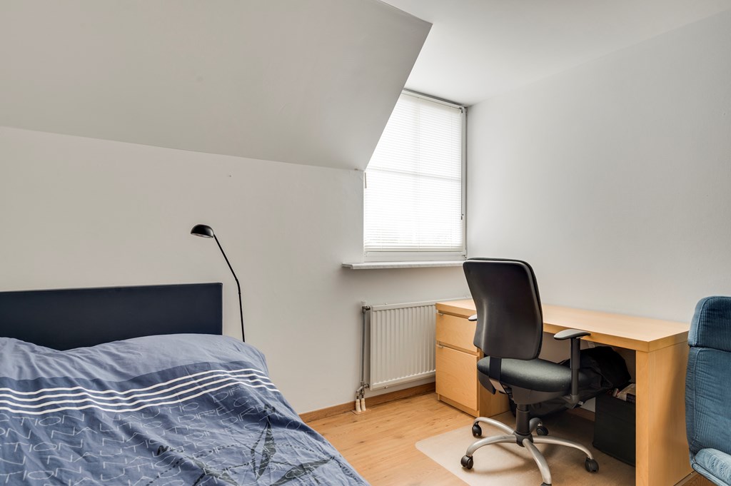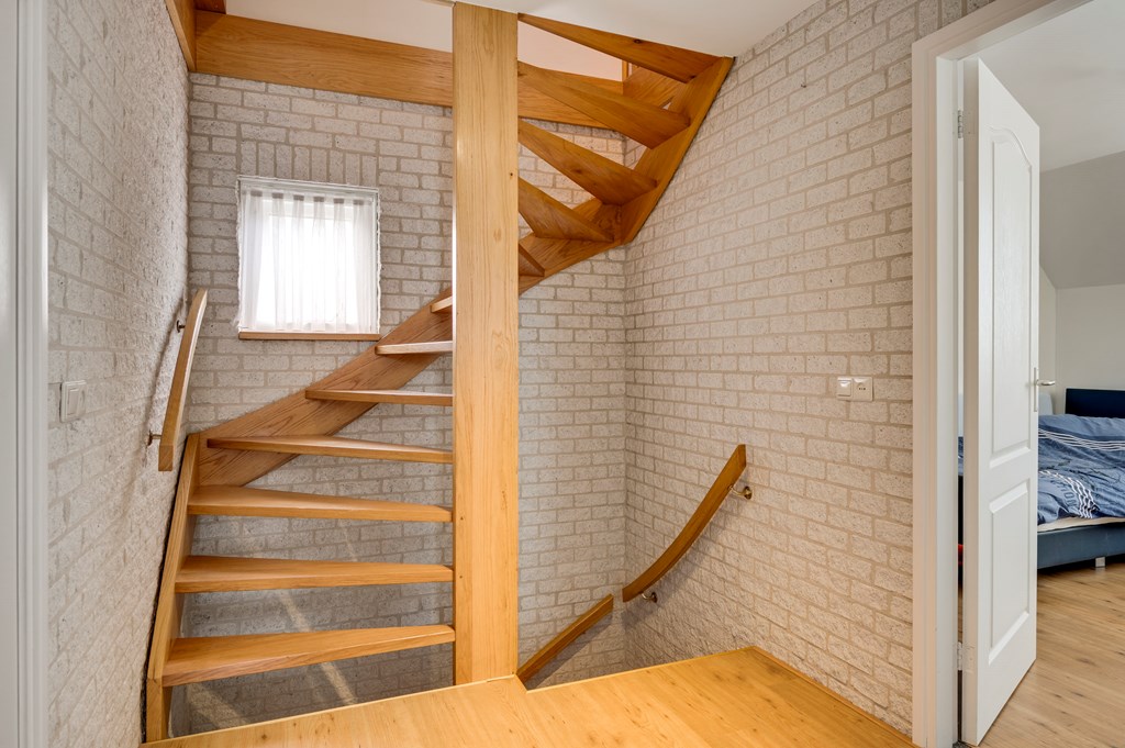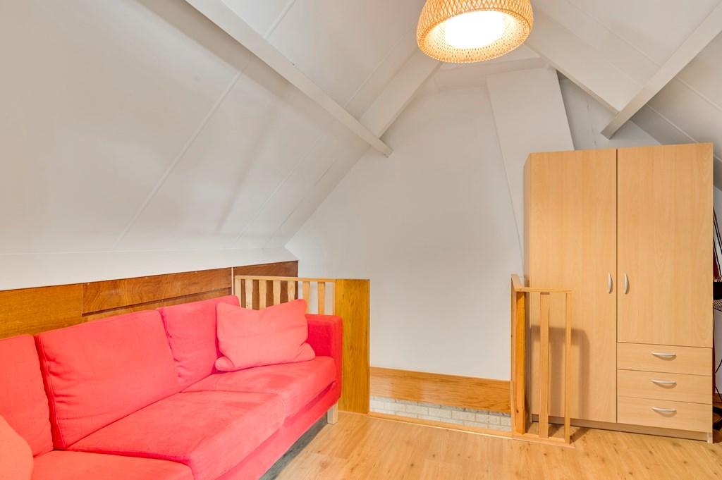 Via de vaste houten trap bereikt u de tweede verdieping met een voorzolder voor flexibel gebruik en daarachter een extra slaapkamer met een Velux dakraam. De gehele zolder is voorzien van goed afgewerkte bergruimtes.
