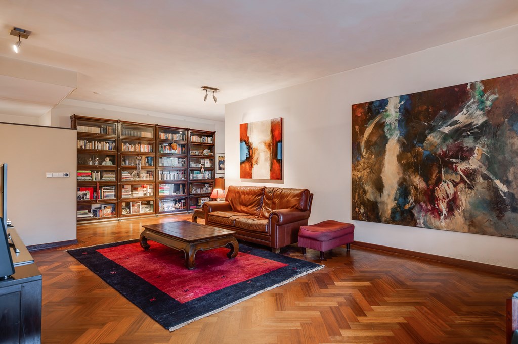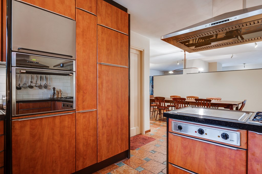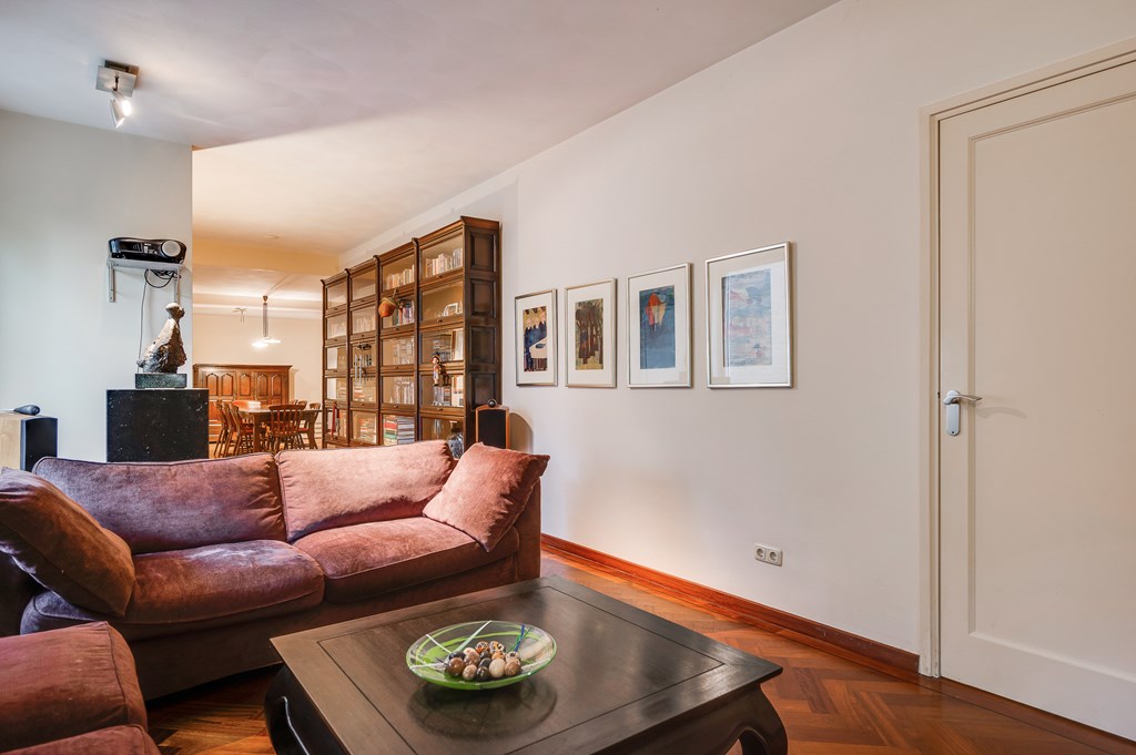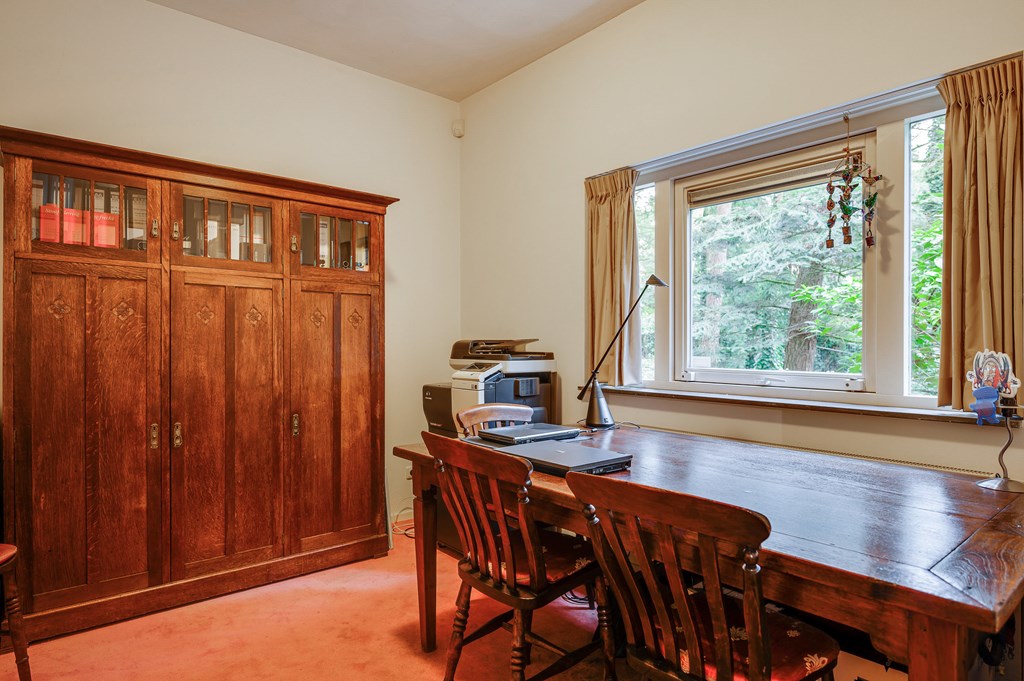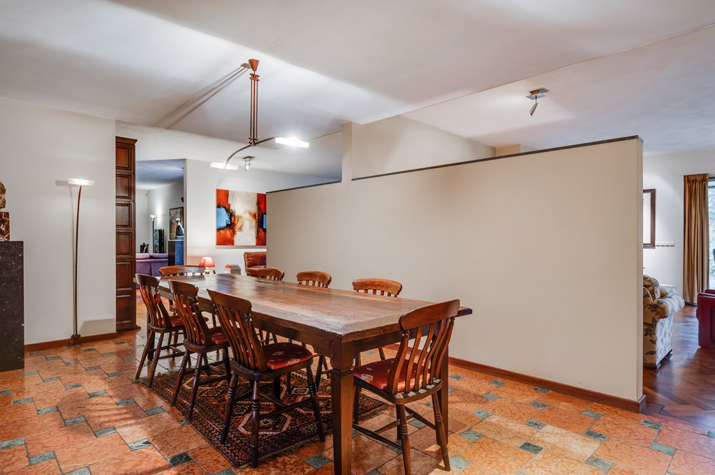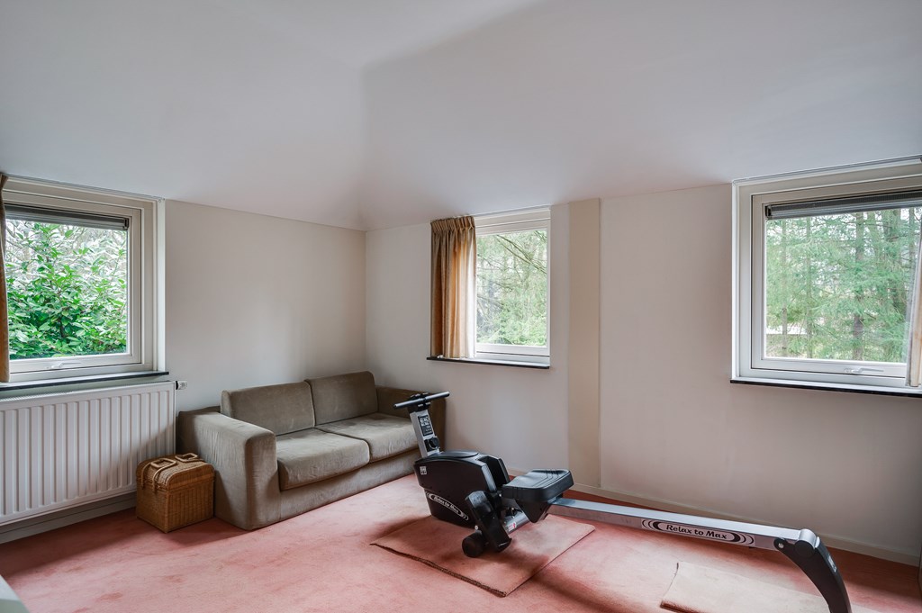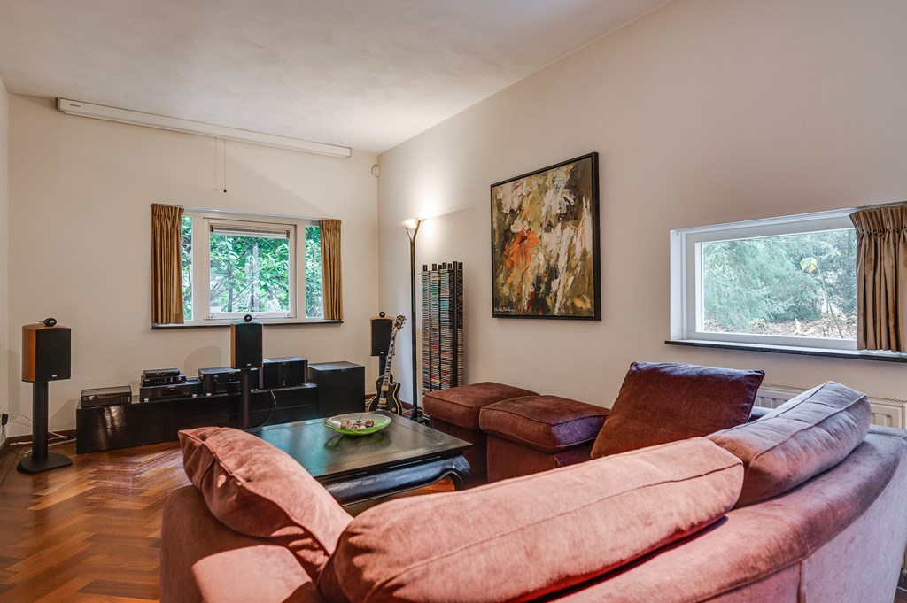 De mega woonkamer is verdeeld in meerdere sfeervolle gedeeltes: een gezellige eetkamer, een knusse zitkamer en een inspirerend muziek- of werkkamerdeel. Dankzij de grote ramen geniet u overal van een prachtig uitzicht op de tuin. De warme houten parketvloer voegt een extra vleugje klasse toe.