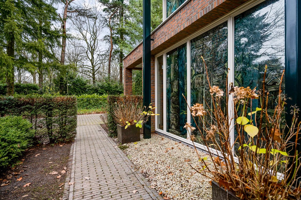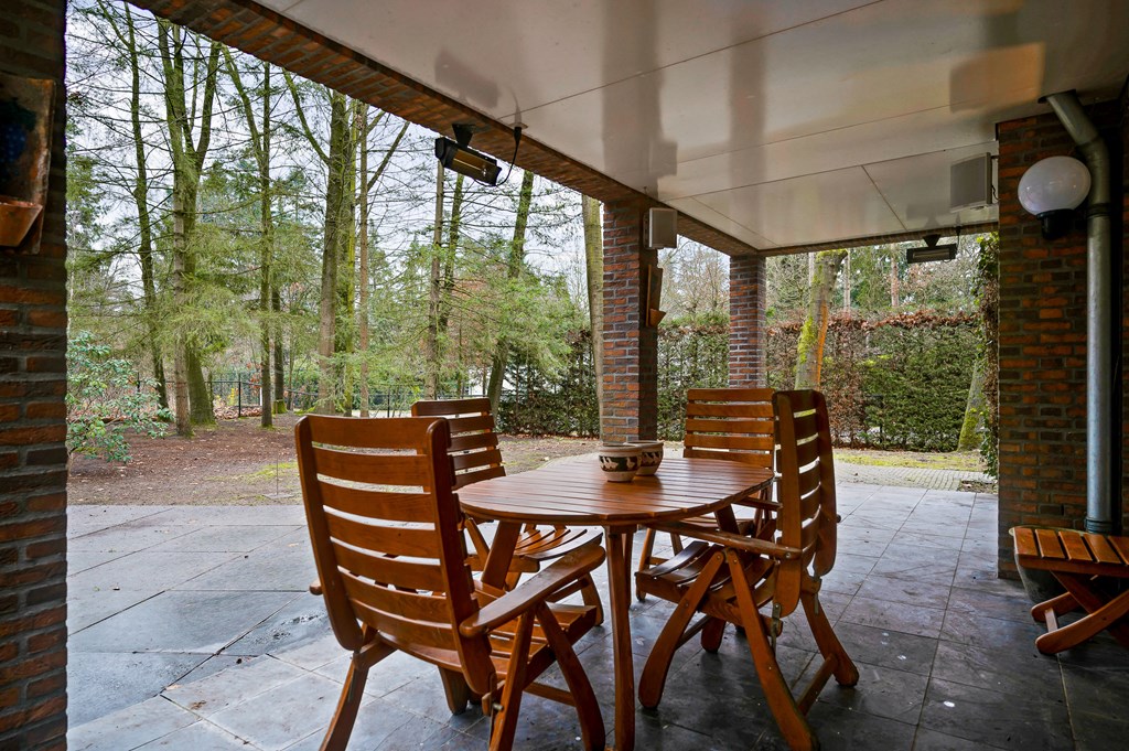 De royale bostuin is volledig omheind en biedt alle privacy die u zich kunt wensen. Ontspan op het overdekte, verwarmde terras of maak gebruik van de dubbele carport en de oprit met elektrisch bedienbare poort. Deze tuin is een oase van rust waar natuur en luxe samenkomen.