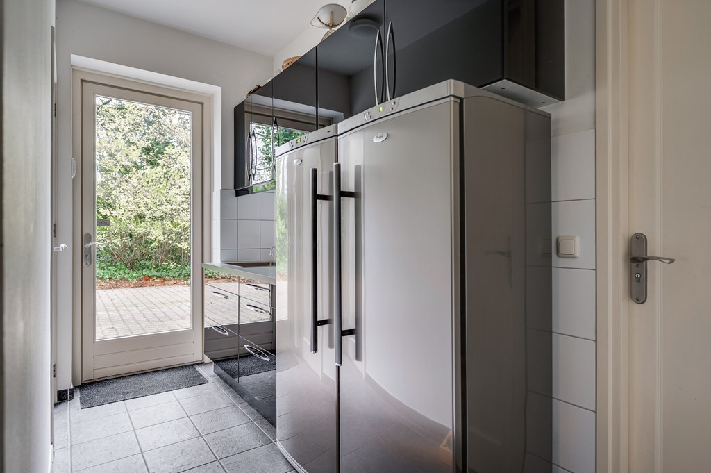 De keuken is volledig uitgerust met apparatuur en biedt een fraai uitzicht naar buiten. Aansluitend vindt u een praktische bijkeuken met pantry en een deur naar buiten. Voor de autoliefhebber is er een dubbele garage met elektrische deur, inclusief een extra toilet.