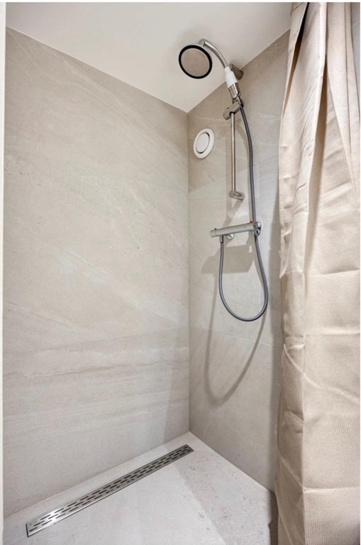 een slaapkamer met en-suite badkamer, met douche en toilet;