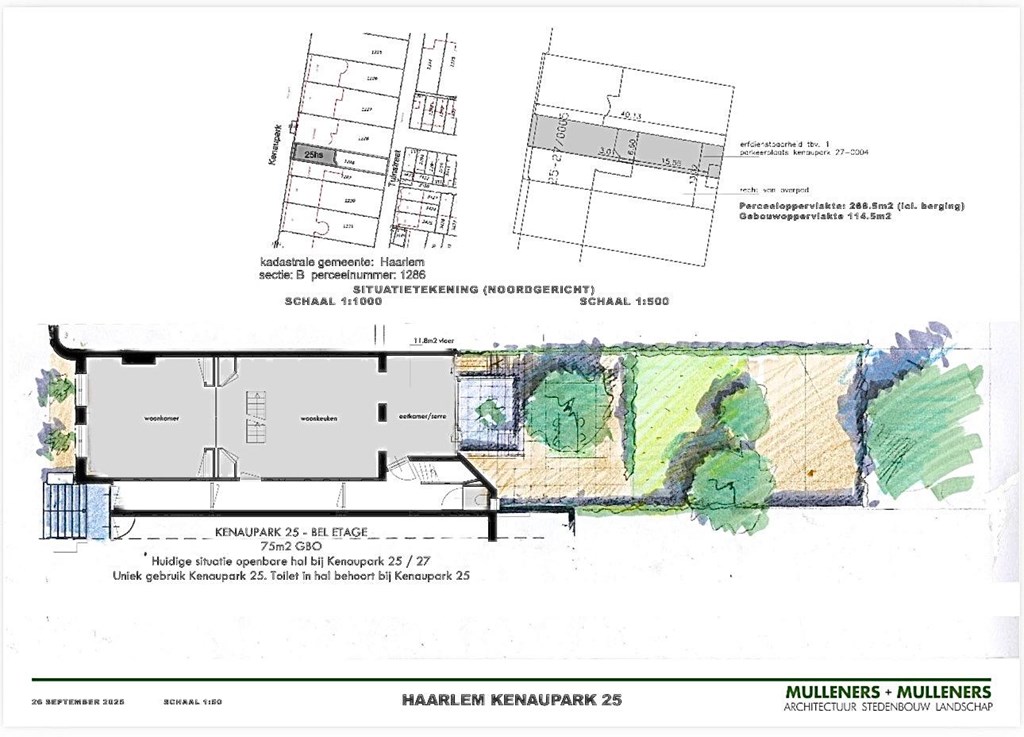 - Oppervlak tuin: ca 125 m2, totaal kaveloppervlakte 270m2