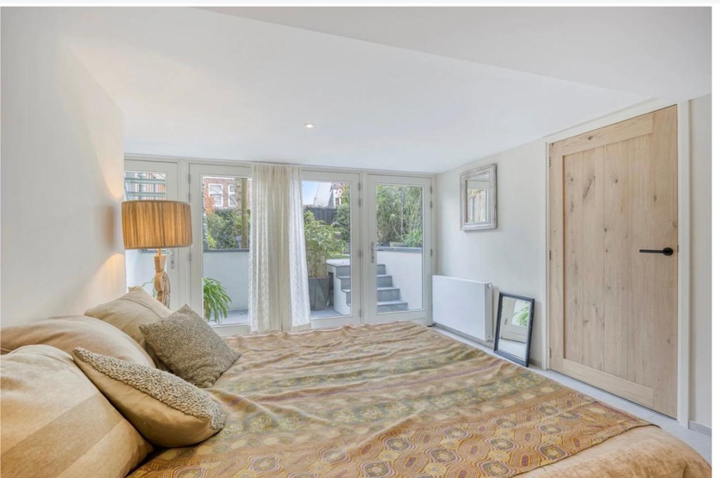 De bel-etage, met hoge plafonds, bevat een sfeervolle ruime woonkamer en suite, met een antieke schouw, glas-in-lood valramen en biedt een geweldig uitzicht op het park, waar je ’s avonds de zon ziet onder gaan.