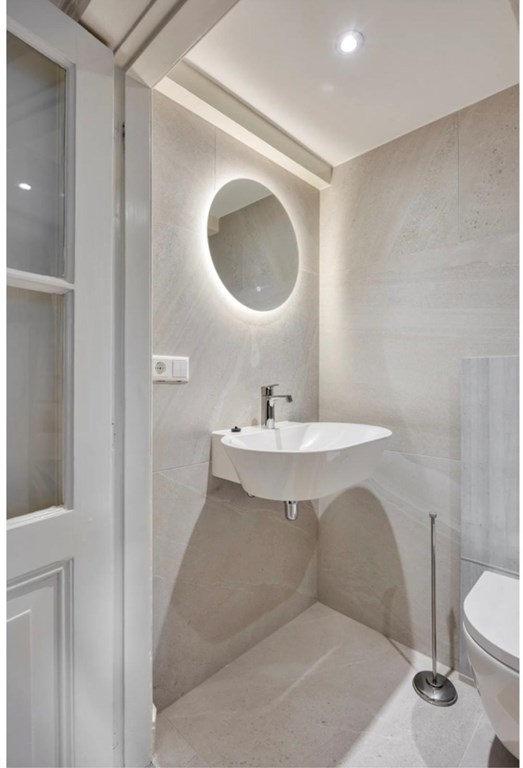 Via een open trap op de beletage kom je in het met smaak ingerichte souterrain,