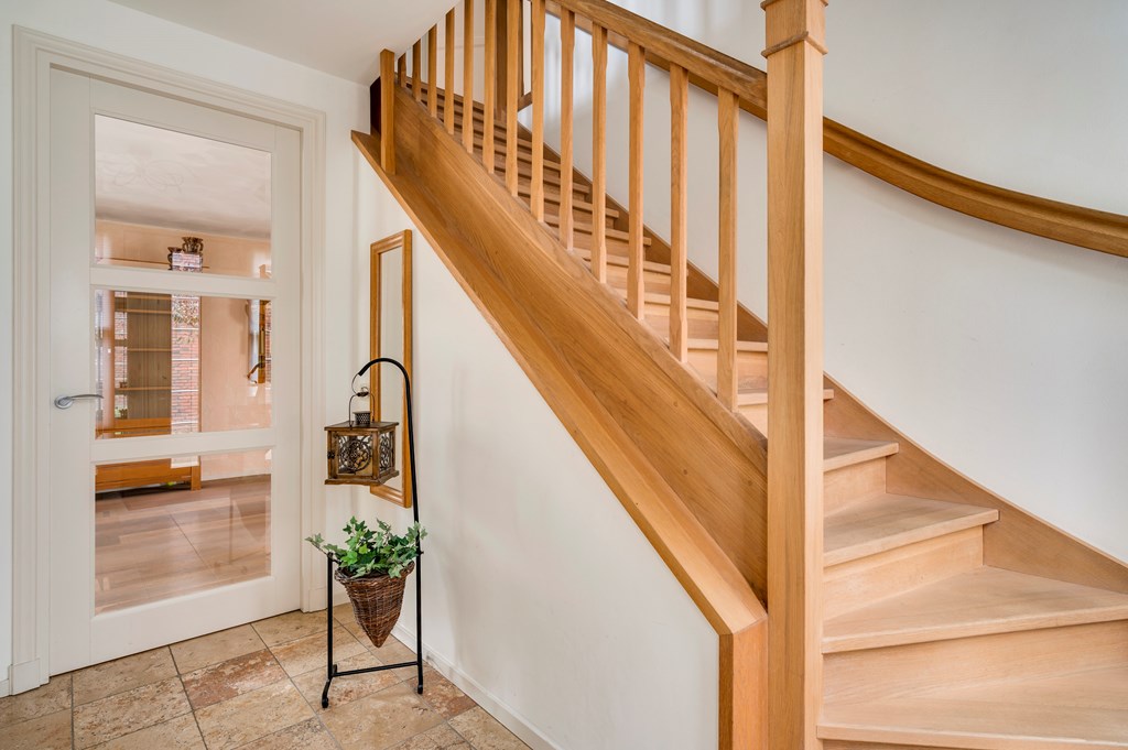 Middels royale overloop met stijlvolle massief eikenhouten vloer.
