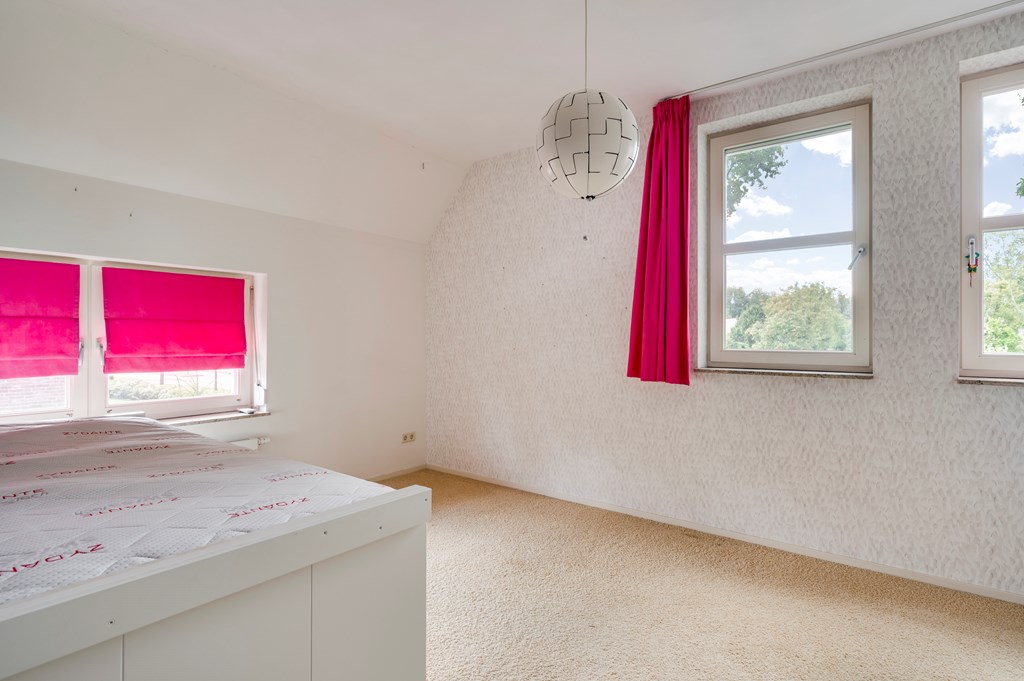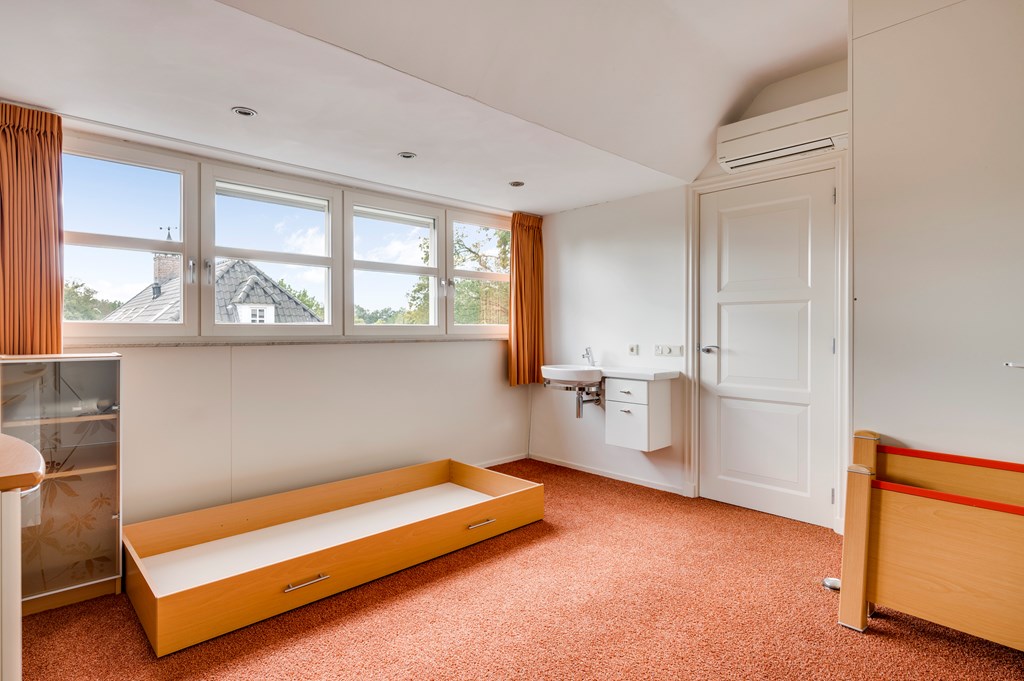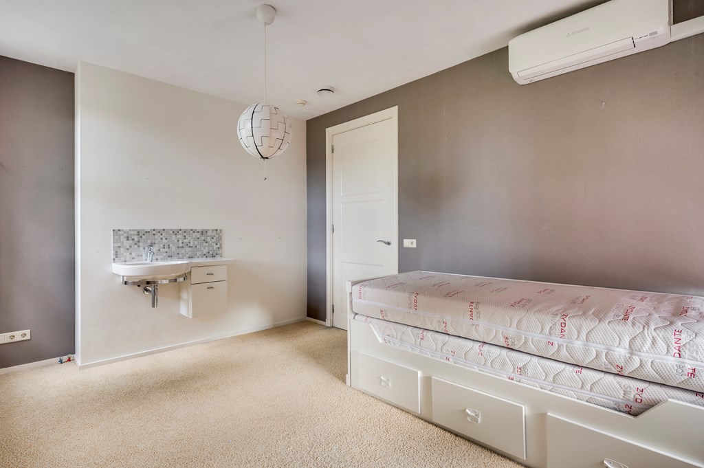 5e Royale slaapkamer met vloerbedekking, vaste wastafel, airconditioning, schuifkastenwand, WTW installatie (2022) en een groot dakkapel.