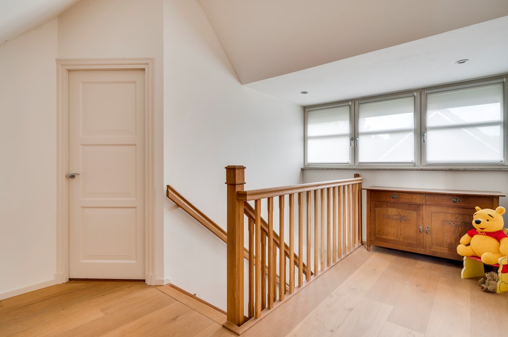 Middels royale overloop met stijlvolle massief eikenhouten vloer en dakkapel.
