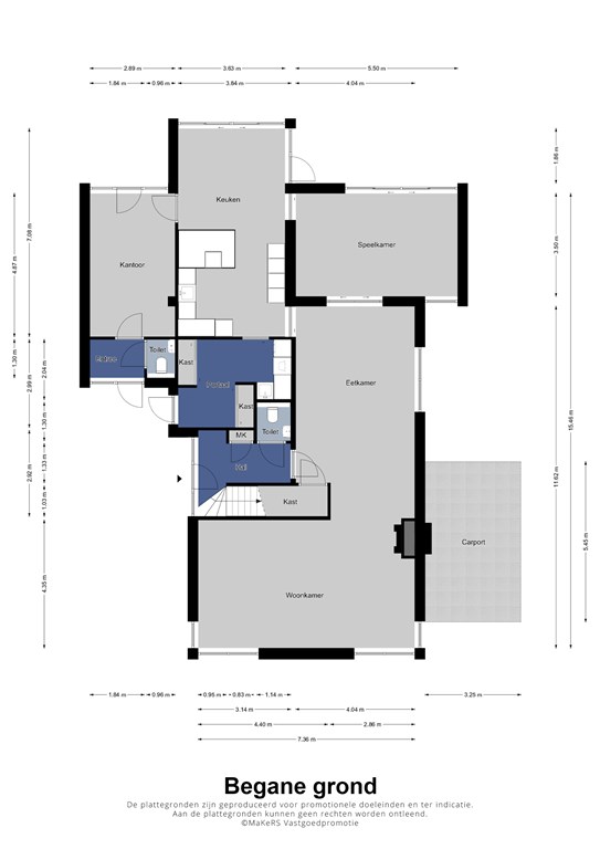 Grote kantoor/werkkamer met portaal voorzien van eigen entree, toiletruimte en toegang tot werkkamer met vloerbedekking en voorzien van vloerverwarming en tevens loopdeur naar de tuin. Vanuit de werkkamer toegang naar de keuken. Voorzien van luifel.